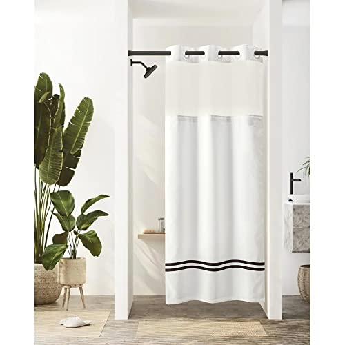 Barossa Design Shower Curtain with Snap in Liner and Satin Accent Stripe