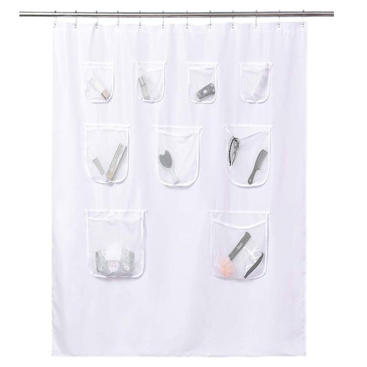 Barossa Design Water-Repellent Fabric Shower Curtain or Liner with 9 Handy Mesh Pockets
